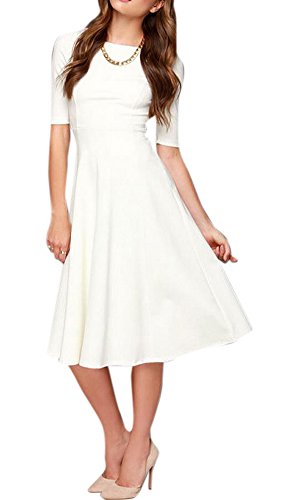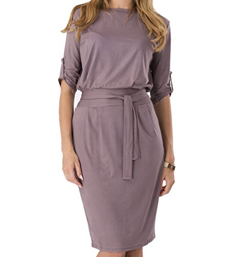 ผู้หญิง Sleeve Shift Fit Flare Evening Party Knee Length Dress เดรส แฟชั่นชุดทำงาน Enlishop