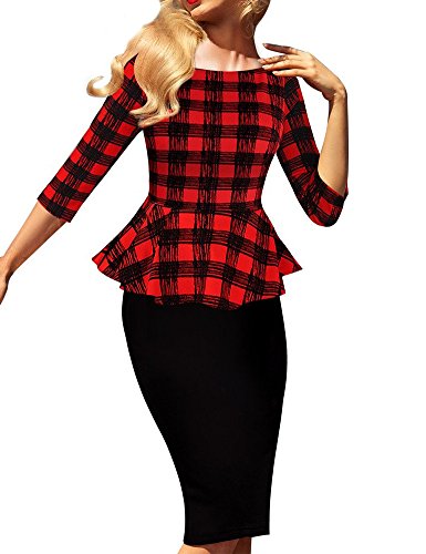 ชุดแซกสวยๆ ใส่ทำงาน Merope J ผู้หญิงs Floral Patchwork Peplum Sleeveless Summer Office Work Dress เดรส แฟชั่นชุดทำงาน
