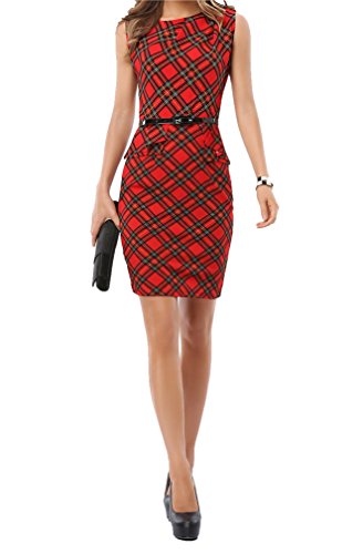 ผู้หญิงs Floral Patchwork Peplum Sleeveless Summer Office Work Dress เดรส แฟชั่นชุดทำงาน Merope J