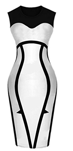ผู้หญิง Sleeveless Sexy Contrast Color Pencil Sheath Dress เดรส แฟชั่นชุดทำงาน Generic