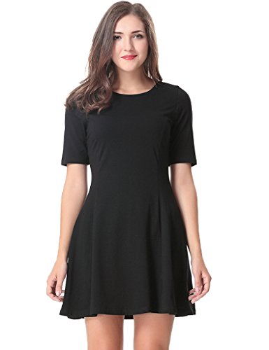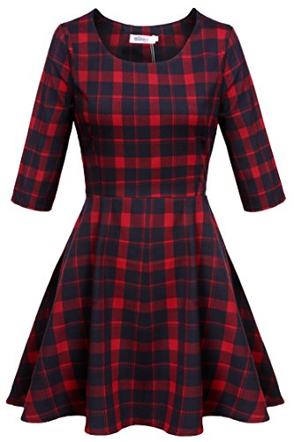 ผู้หญิง 1/2 Sleeves Fit and Flare Plaid Casual Summer Dress เดรส แฟชั่นชุดทำงาน Meaneor