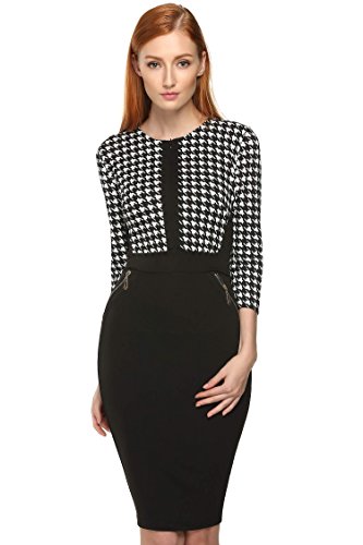 ชุดแซกสวยๆ ใส่ทำงาน Merope J Houndstooth-Print 2/3 Sleeve Business Dress เดรส แฟชั่นชุดทำงาน for ผู้หญิง เดรส แฟชั่นชุดทำงาน