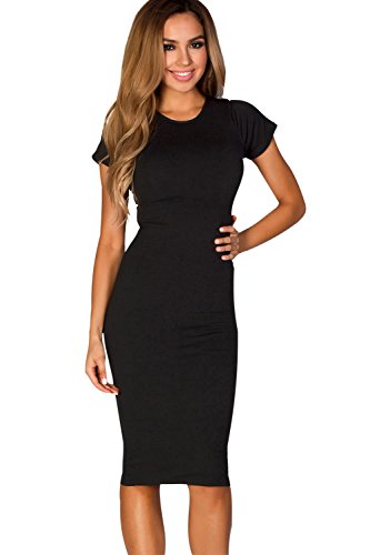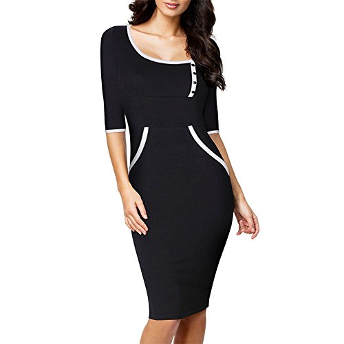 ผู้หญิงs Elegant Scoop Neck Cotton Blending Slim Pencil Business Party Midi Dress เดรส แฟชั่นชุดทำงาน YMING