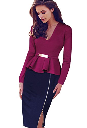 ชุดแซกสวยๆ ใส่ทำงาน Merope J ผู้หญิง Deep-V Neck Busniess Peplum Fitted Casual Bodycon Dress เดรส แฟชั่นชุดทำงาน